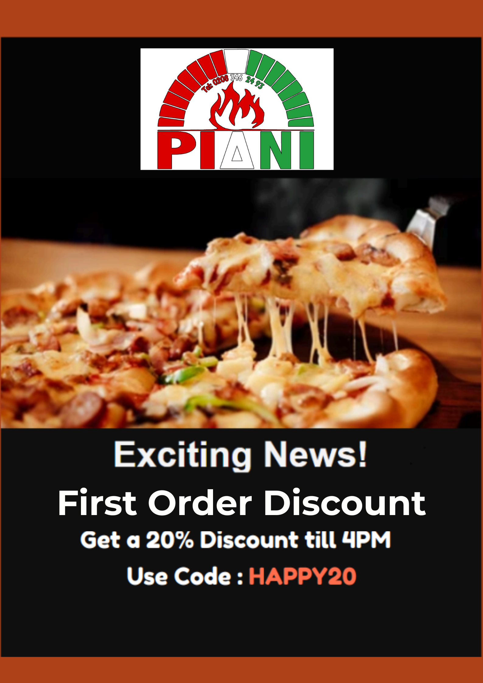 Piani Pizza app still operates on Uber Eats as before with a few new updates. Orders are best made through our website for cheaper prices as well as Uber Eats with Piani Pizza . Deliveroo available.